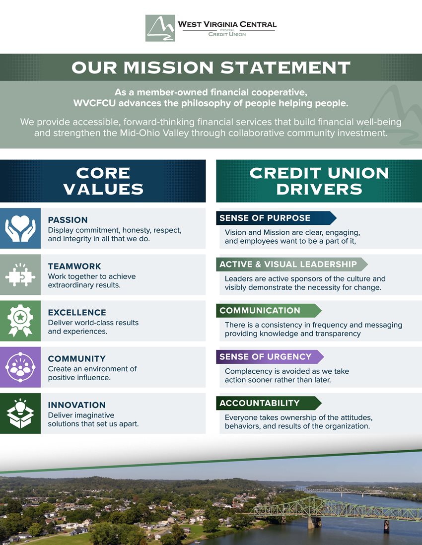 Our President/CEO, Michael Tucker, has the following to say about WV Central. “We like to operate under the philosophy of People Helping People. We dedicate each day to our members, striving to provide world-class services that meet their needs and expectations. If you are a current member of Central, I encourage you to use as many of our services as possible; if you are currently not a member but are in our field of membership please consider becoming a member. Let’s work together to do more for others, which will allow each and every one of us an opportunity to enjoy a better quality of life.”